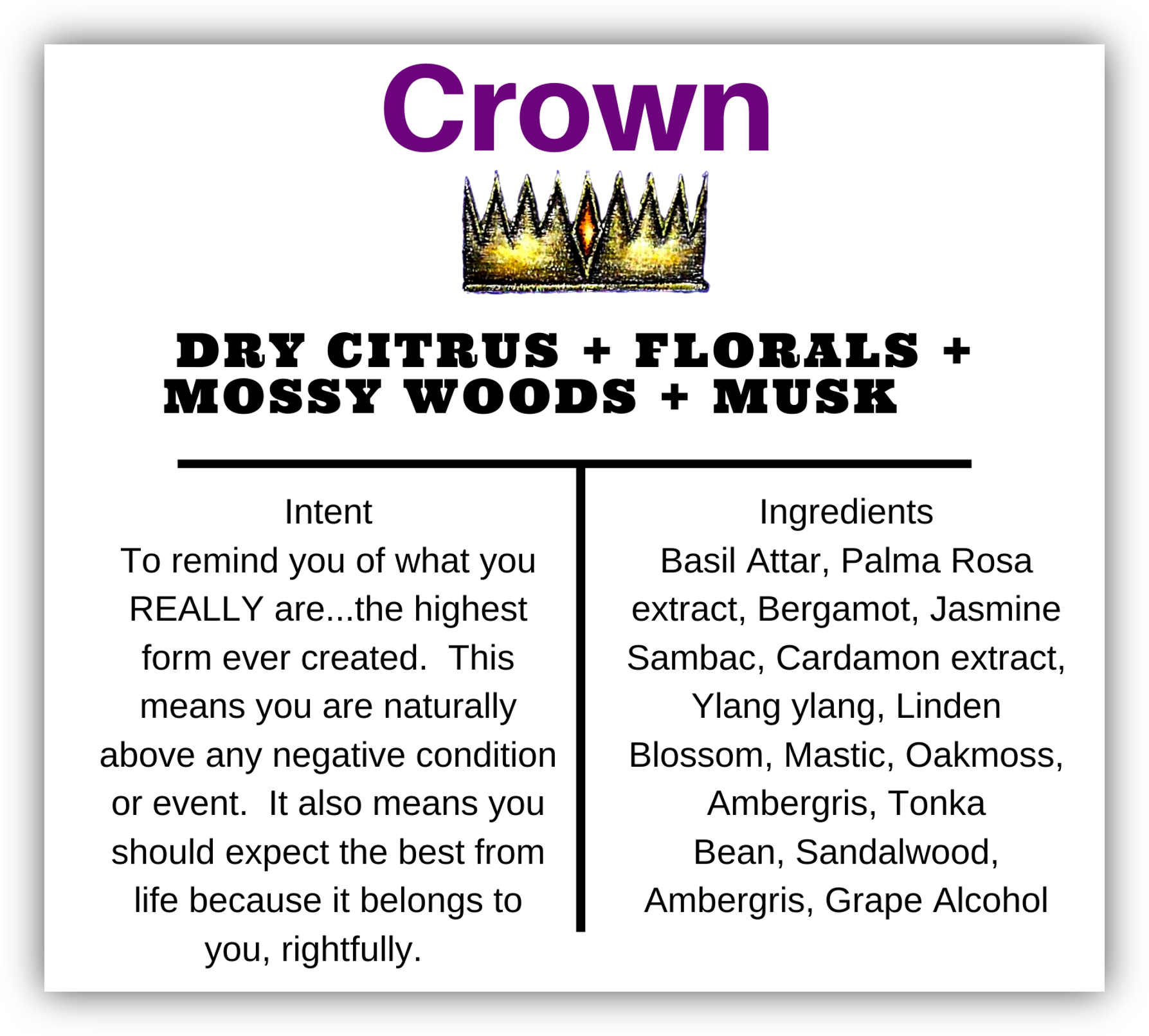 Découvrez le luxe et la gourmandise de Crown et plongez-vous dans un parfum qui vous transportera dans un autre monde de beauté entièrement naturelle.