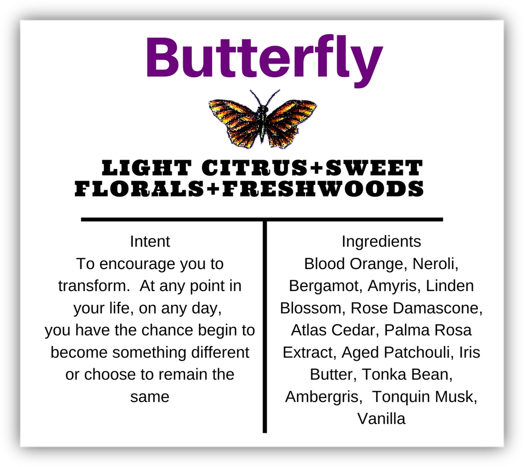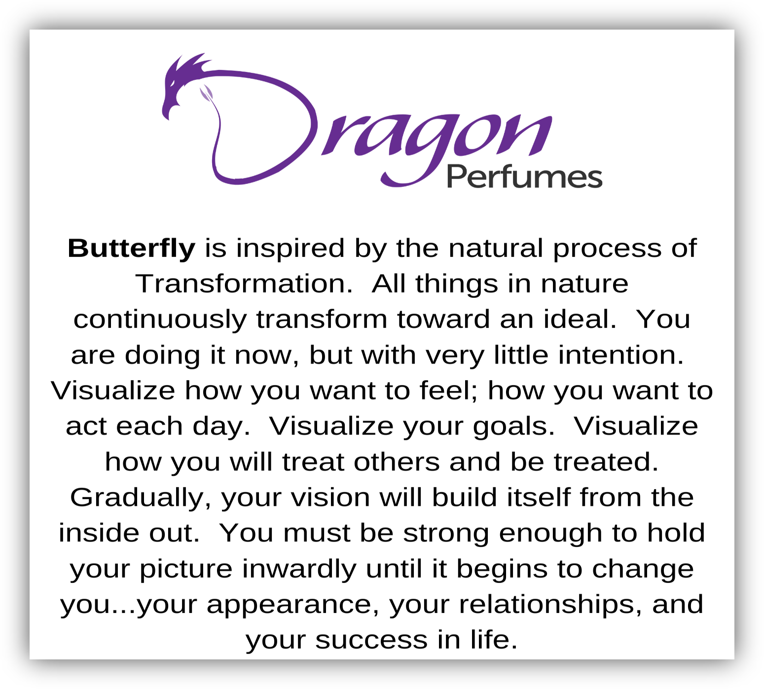 Butterfly opens with a bright spark of citrus and airy white florals that lift the spirit. Yet even as the top notes dance skyward, the scent is anchored by Dragon Radiance — a luminous amber-mineral musk foundation that steadies the flight. As Butterfly unfolds, warm balsamic woods and aged patchouli wrap around sandalwood, deepening into a grounded, resonant drydown.